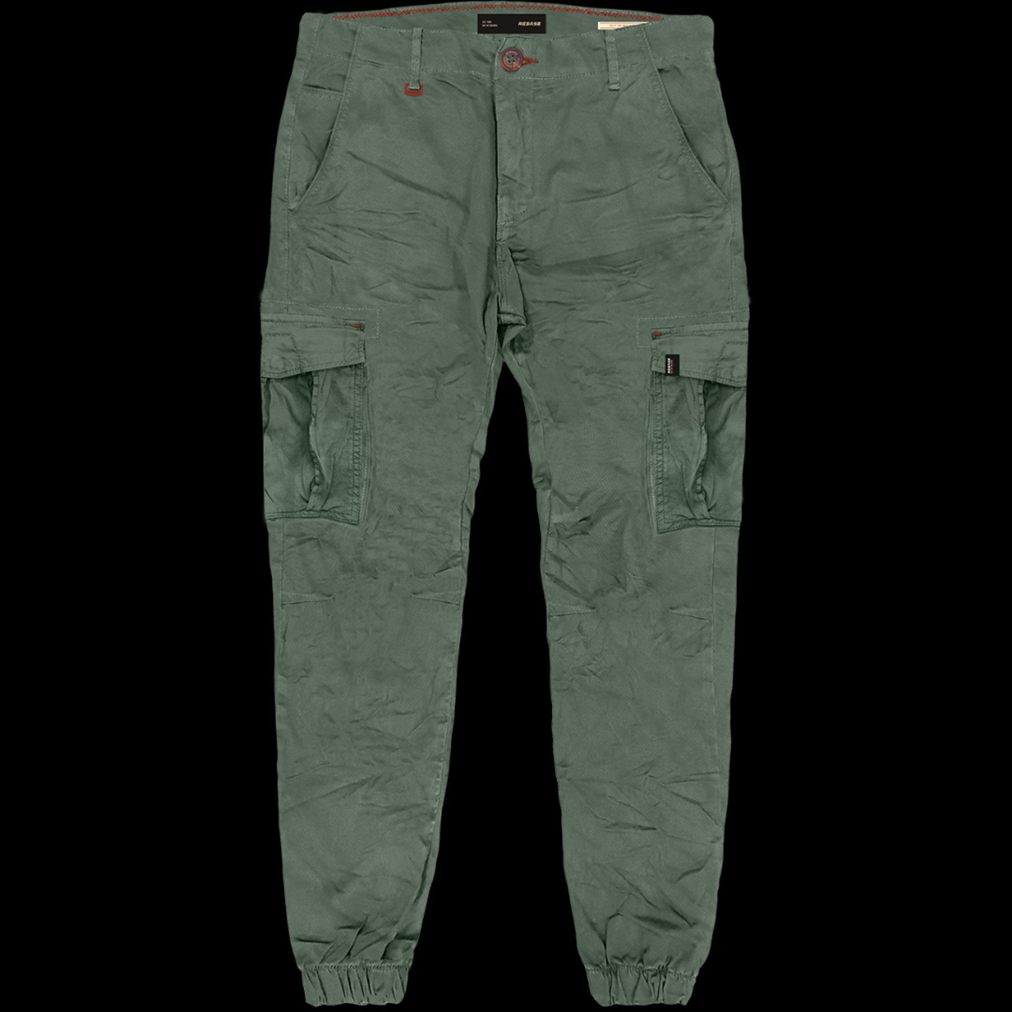 Cargo ανδρικό παντελόνι σε μονόχρωμο στυλ, με κανονική εφαρμογή και στενό πόδι μέχρι τον αστράγαλο. Ιδανικό για καθημερινές ή πιο εκλεπτυσμένες εμφανίσεις φθινοπώρου και χειμώνα. Συνδυάστε με μάλλινο πουλόβερ και δερμάτινες μπότες για ένα κλασικό και σύγχρονο look.